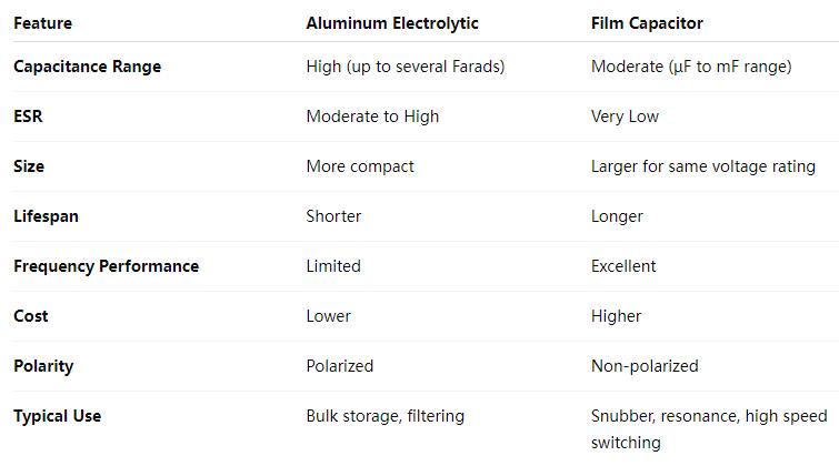 Jämförelse: Aluminiumelektrolytisk kontra filmkondensatorer